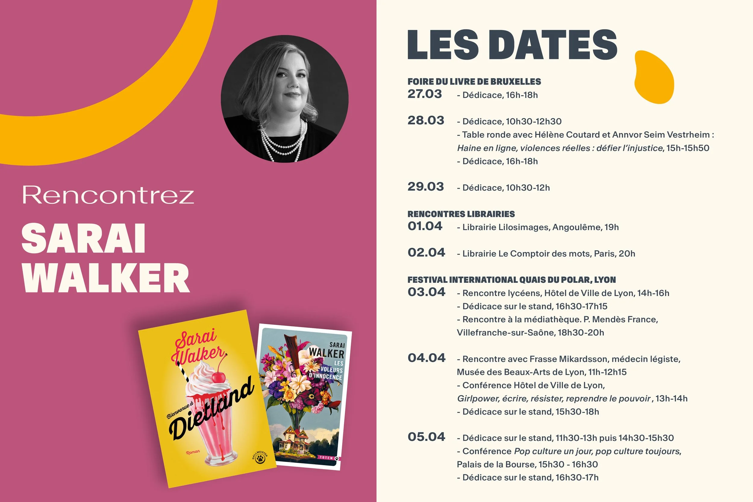 I’ll be doing a series of events in France and Belgium to promote the French language re-publication of Dietland (Bienvenue á Dietland). I’m so excited to be doing this tour with my French publisher, Gallmeister.